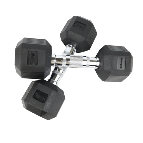 MDBuddy Hex Rubber Dumbbell Weights Commercial Rubber Coated Dumbbell Weight Workout Equipment for Strength Training